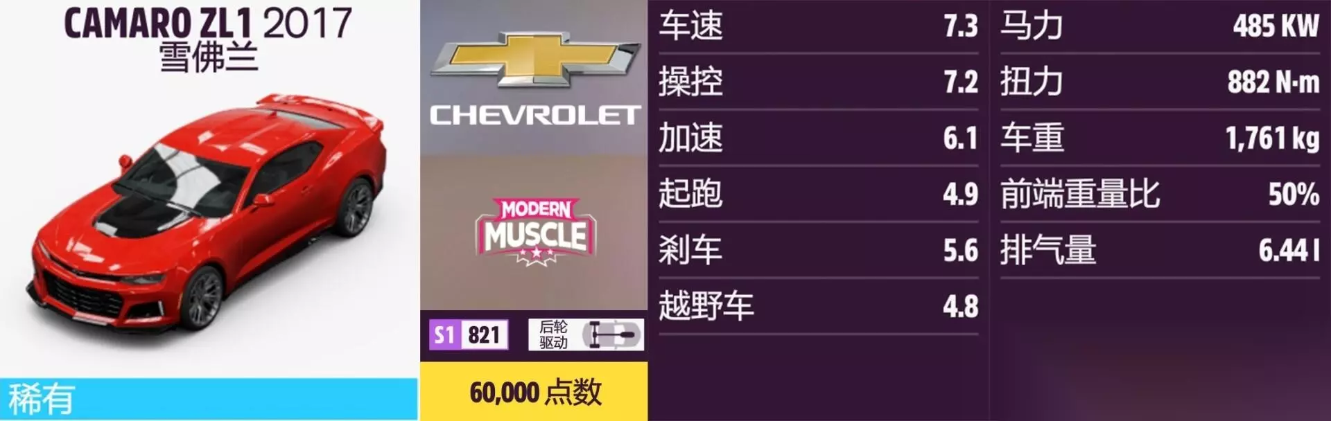 CAMARO ZL1 年份:2017年。 解锁方式:抽奖或通过车展购买。