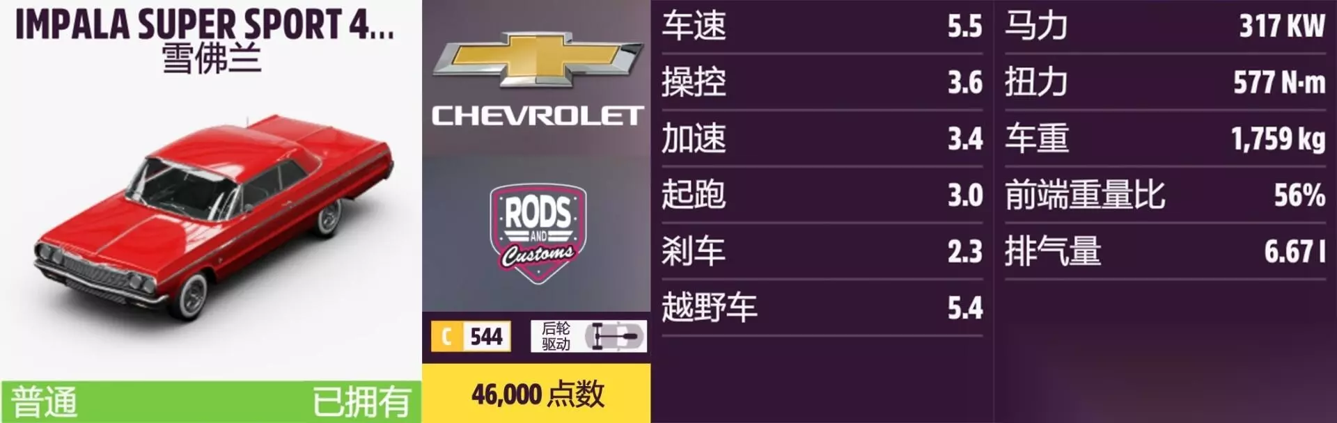 IMPALA SUPER SPORT 409 年份:1964年。 解锁方式:抽奖或通过车展购买。