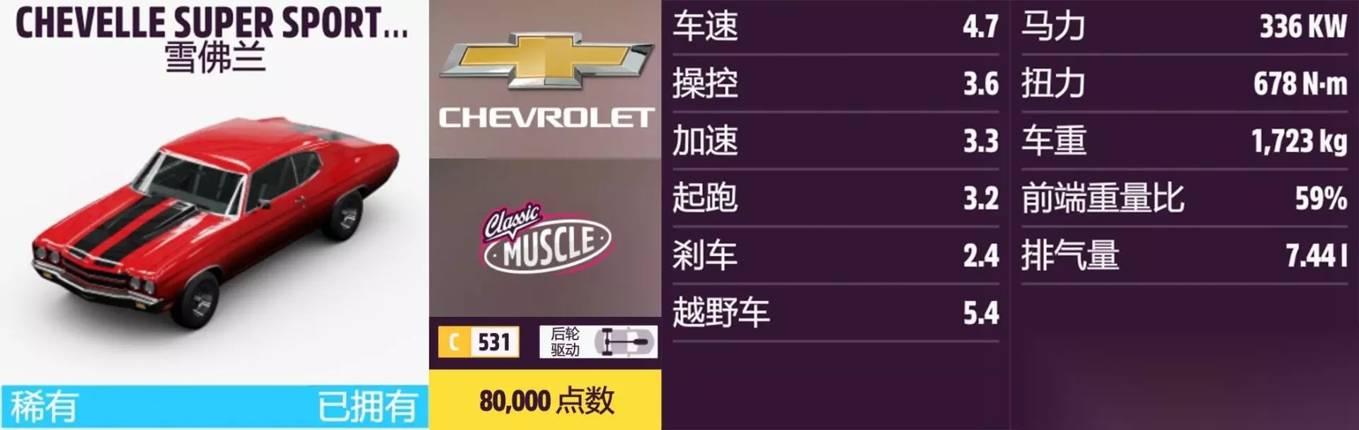 CHEVELLE SUPER SPORT 454 年份:1970年。 解锁方式:抽奖或通过车展购买。