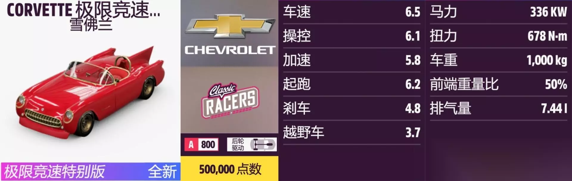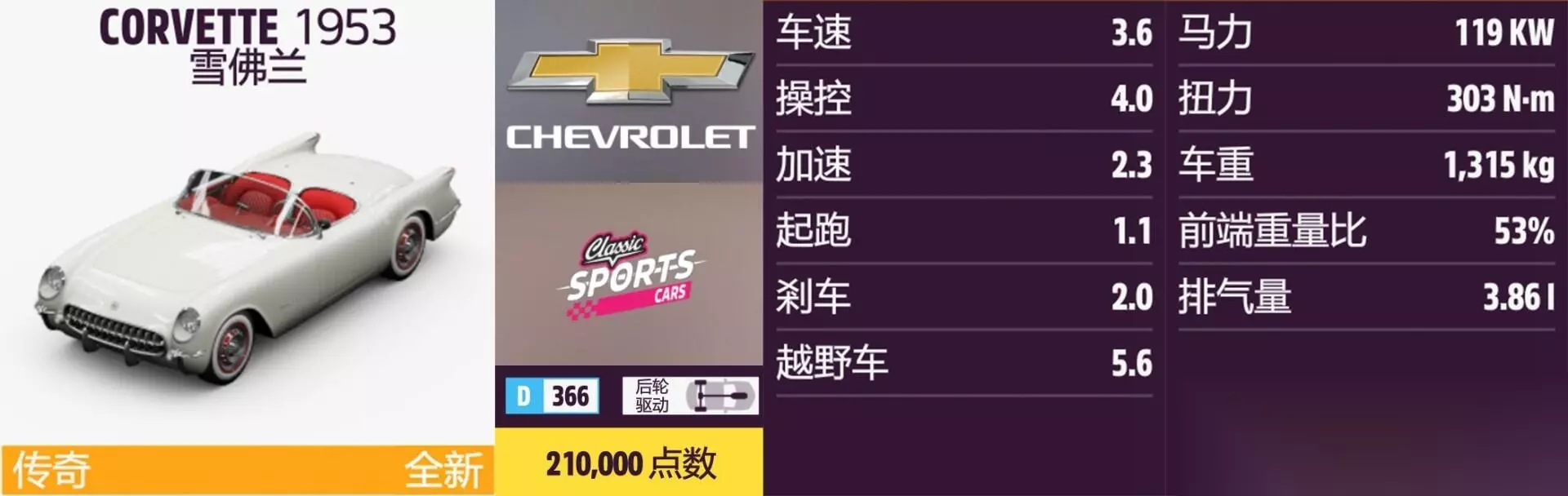 CORVETTE 极限竞速特别版 年份:1953年。 解锁方式:抽奖。