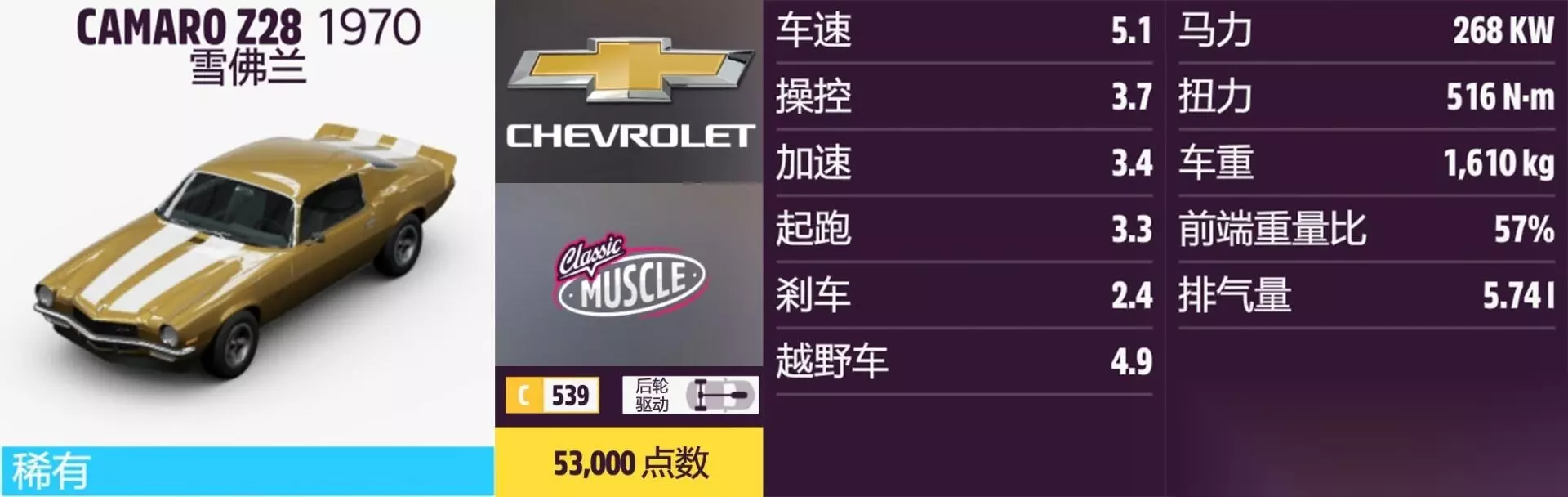 CAMARO Z28 年份:1970年。 解锁方式:抽奖或通过车展购买。