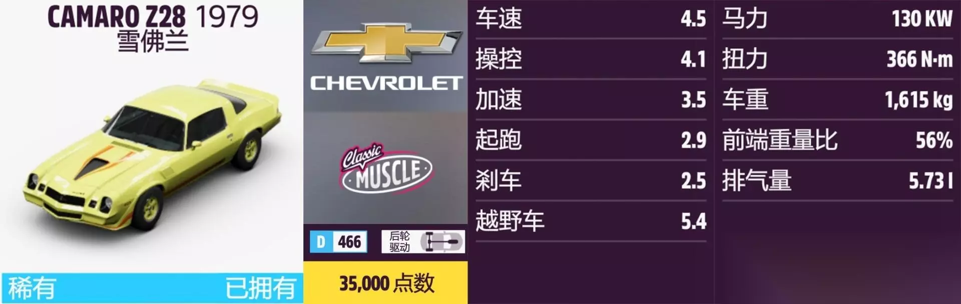 CAMARO Z28 年份:1979年。 解锁方式:抽奖或通过车展购买。