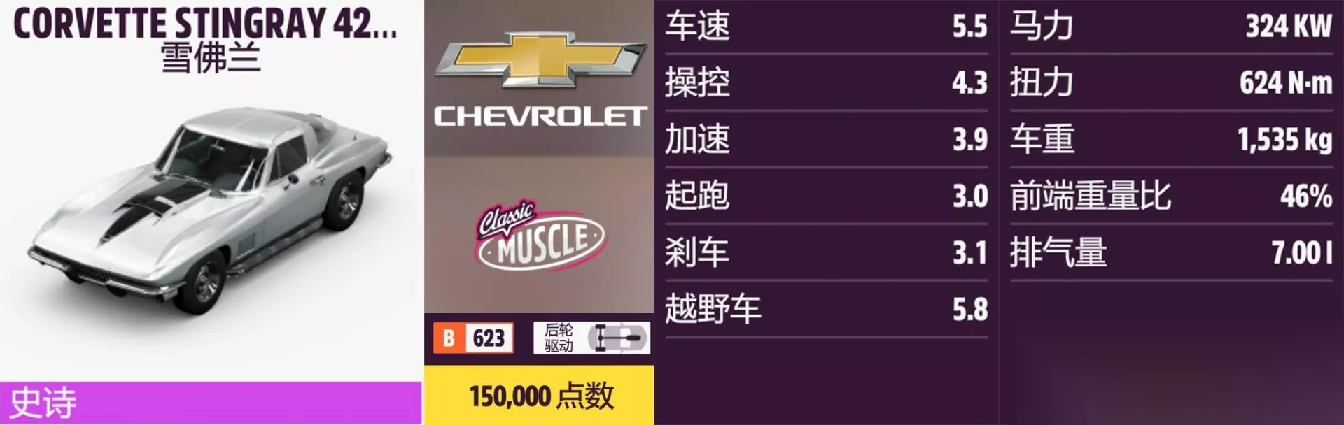 CORVETTE STINGRAY 427 年份:1967年。 解锁方式:抽奖或通过车展购买。