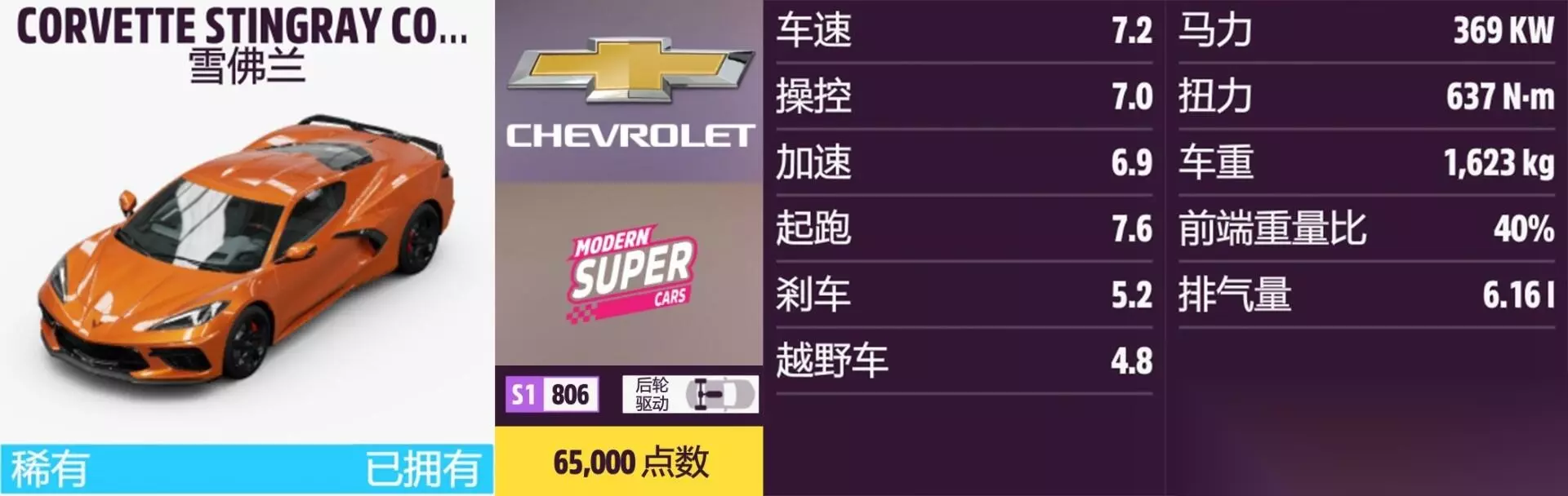 雪佛兰全车辆获取方法介绍 CORVETIE STINGRAY COUPE 年份:2020年。 解锁方式:通过车展购买。