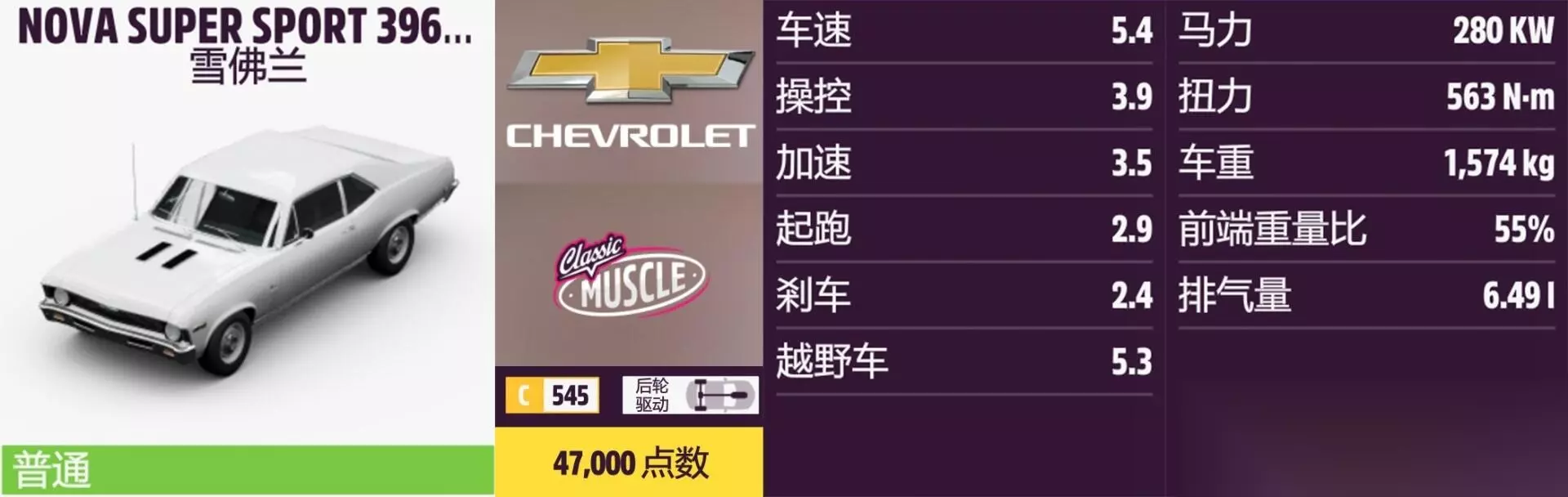NOVA SUPER SPORT 396 年份:1969年。 解锁方式:抽奖或通过车展购买。