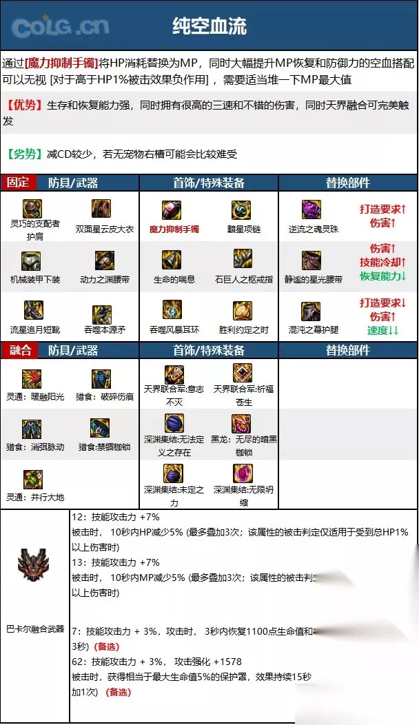 技能加点和护石 1.常见玩法心得 上buff,吃药,注意装备是否触发,吸满血气触发被动 脱手技能可以偷跑,此外75、80、95技能都有延迟判定,可以偷跑;注意保持血气,在耗血技能中穿插吸血技能,保持吸血状态可以压缩冷却; 依靠赤影步和无敌技能在团本中灵活输出。 2.加点 制式武器加点: 45以上技能点满,噬魂囚牢点满,血翼突击可点1用于位移。狱血之犬和鲜血长枪点1用于控制破韧,小技能点满狱血之牙和猩红狩猎,剩余sp分给血蝠之袭(如果更偏好血蝠之舞也可以分给它,秒伤和百分比都更高)。 tp方面:由于110tp富裕,点满主力技能之后还剩余2级tp可以任意选点1的技能(例如血蝠之舞,绯红之狱,基础精通等)