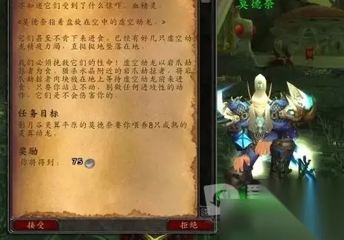 5、这时候会遇到一个叫莫德奈的NPC,找他接任务,开启灵翼之龙的声望。