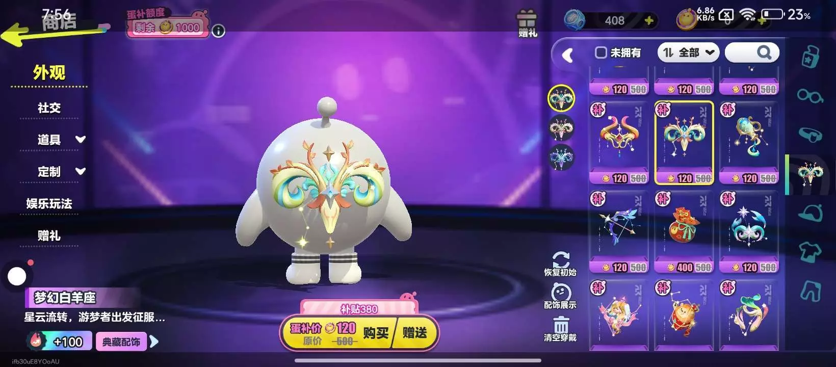 背饰:梦幻白羊座