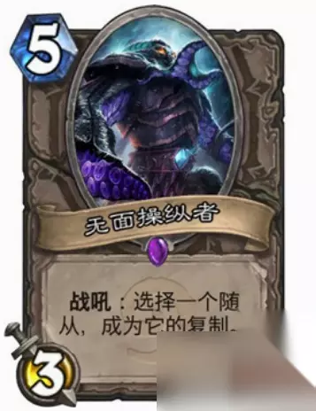 卡牌介绍: 无面操纵者: 可以打出送掉522的同时复制一个939的COMBO,这个COBOM一旦出现,对快攻(主要是骑士)100%胜率。 针对墙德,复制吃了大蜘蛛的魔块,这个操作成功的话,由劣势对局变成优势对局。