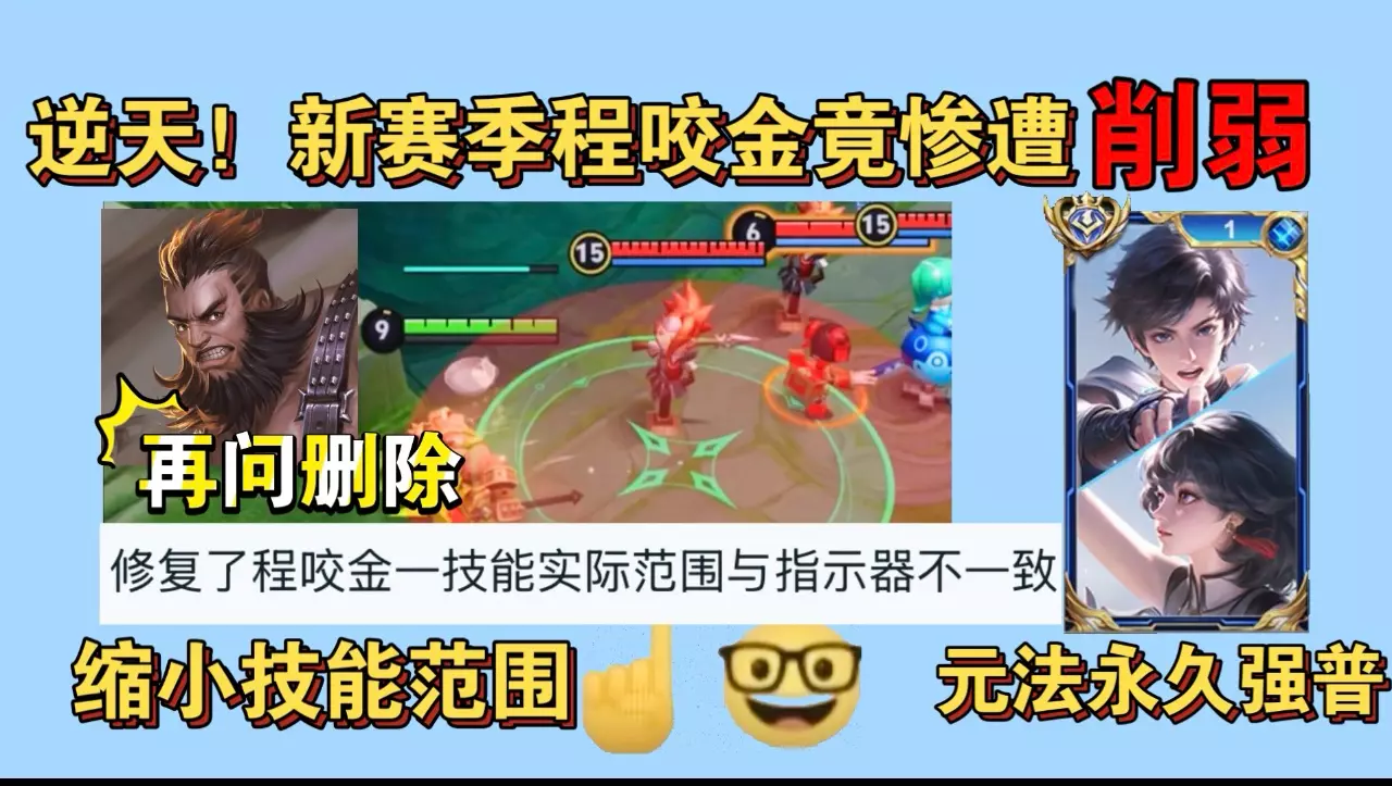 这是关于王者荣耀的英雄调整爆料,提到17位强势英雄将面临削弱,程咬金没有被暗改,还介绍了元刺的玩法特色,以及孙策等英雄的调整方向,同时提及新赛季部分英雄胜率变化情况。