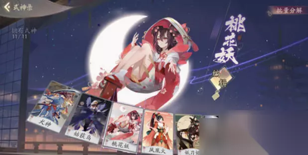 桃花妖: 桃花妖目前是游戏里唯一的专业奶妈,不仅可以给式神回血复活,更可以附加迅捷状态使当回合有更多出手机会,必要时自身也可成为肉盾,是天梯中最实用和百搭的式神了。