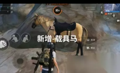 新增的马,马需要吃草加油,记得骑了一会就要带到安全的地方让它吃草,而且马的状态很快就会回复,注意马属于普通载具不能收回背包,记得看好自己的马不然会被别人骑走,还有几点是车做不到的,第一点,车在主驾驶位是不可以拿枪的,马的话点击骑射键,这个时候主驾驶也可以单手持枪射击,但是在马上持枪的种类还是有限的,只能拿冲锋枪,步枪,霰弹枪,爆炸猎弓,像机枪狙击枪甚至手枪都不能拿,不过在骑射的过程中操作键会被隐藏但是像碰到一些小的障碍物会自动躲避,大的障碍物除外,还有就是点击骑射的瞬间马会以一个正常的速度跑,想要动作快一点的话就得在骑射前多按一会奔跑再切换骑射,第二点,马还有跟随建可以跟随前面的马奔跑,第三点,如果有车撞击马,按跳跃键可以跳过汽车,是不是很帅,第四点,普通载具是不可以开到河里的,但是马可以过河,不过在河里马的时速会在20,马的耐用度就是一梭子m4的样子,马在奔跑时切换后排会很快停下来不会像车一样滑行一段,马的刷新地点一般在主题区马棚都会刷