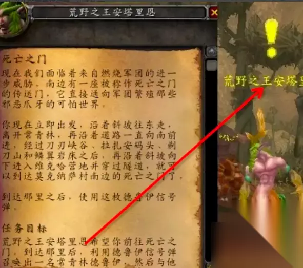 2、然后找到NPC荒野之王安塔里恩交接取任务。
