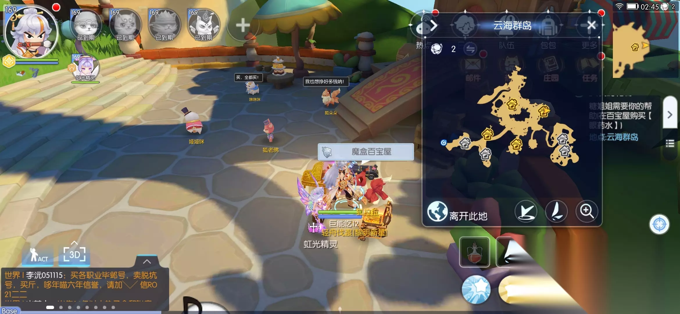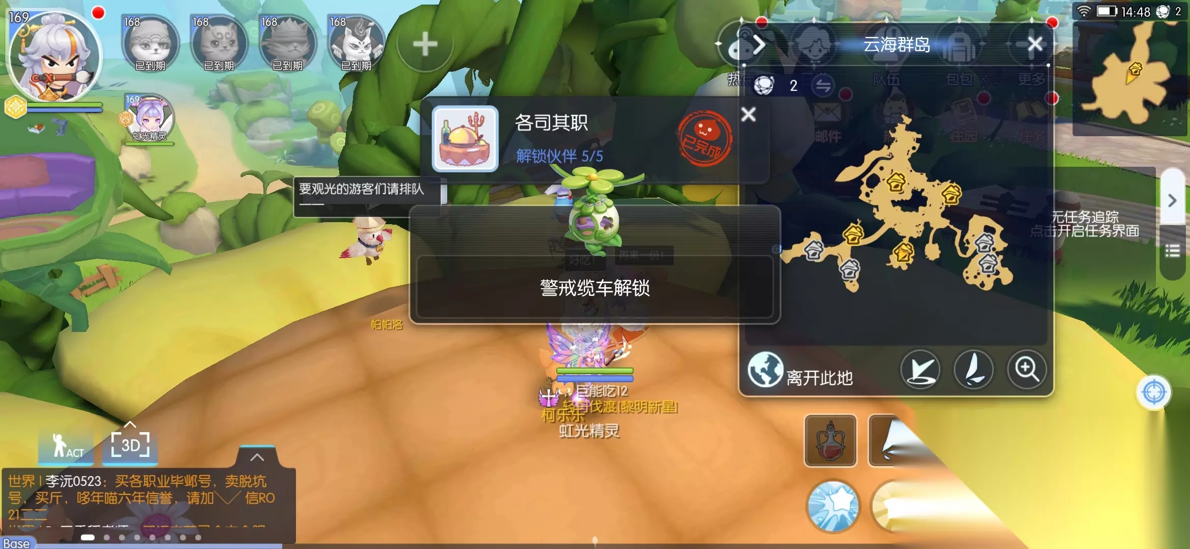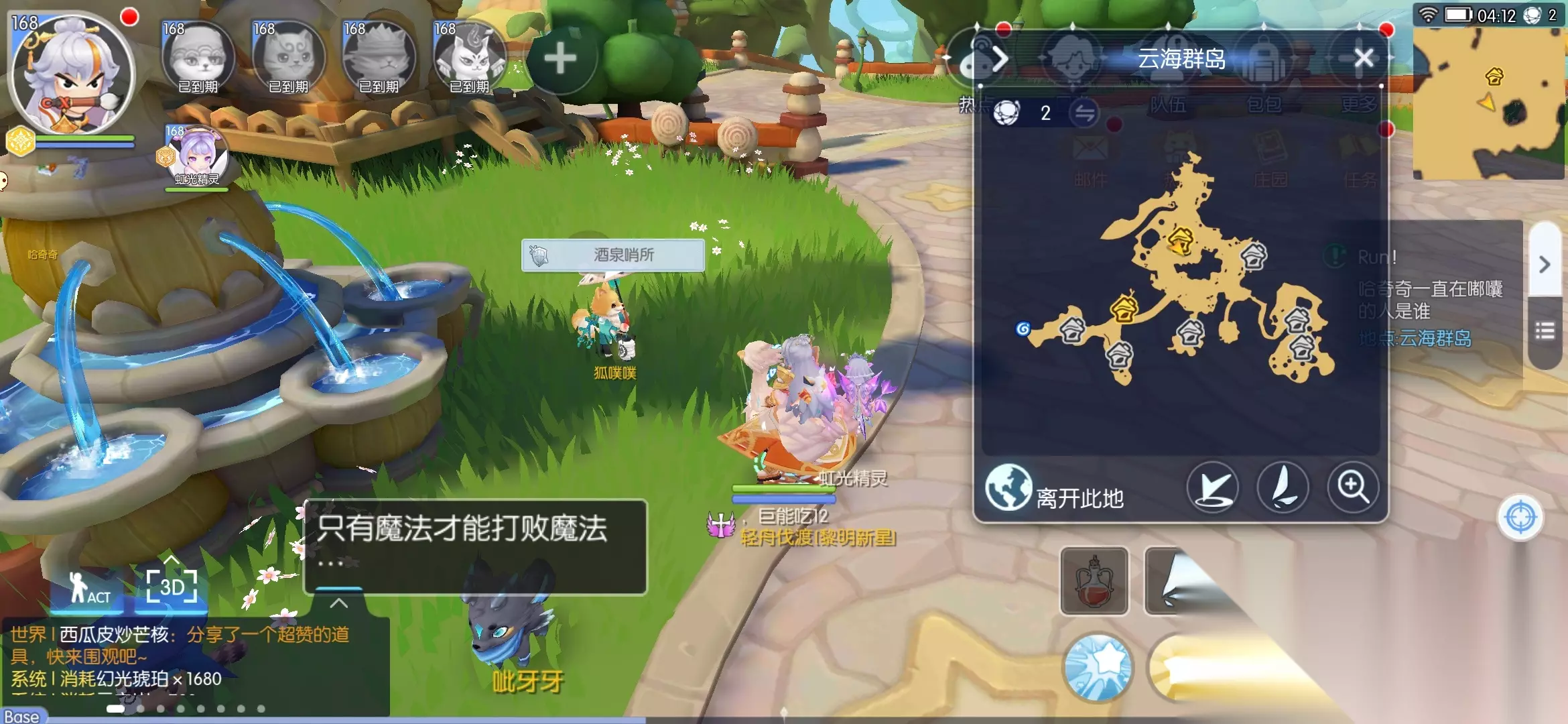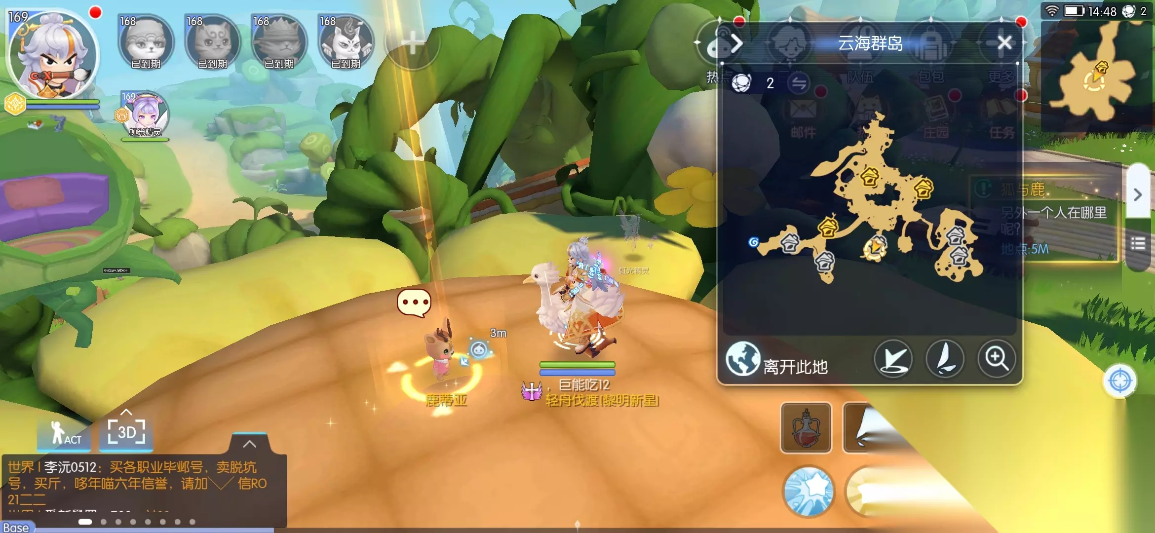 这里需要注意,甜梦原野在梦幻庄园下面 需要离开云海群岛才能自动走过去