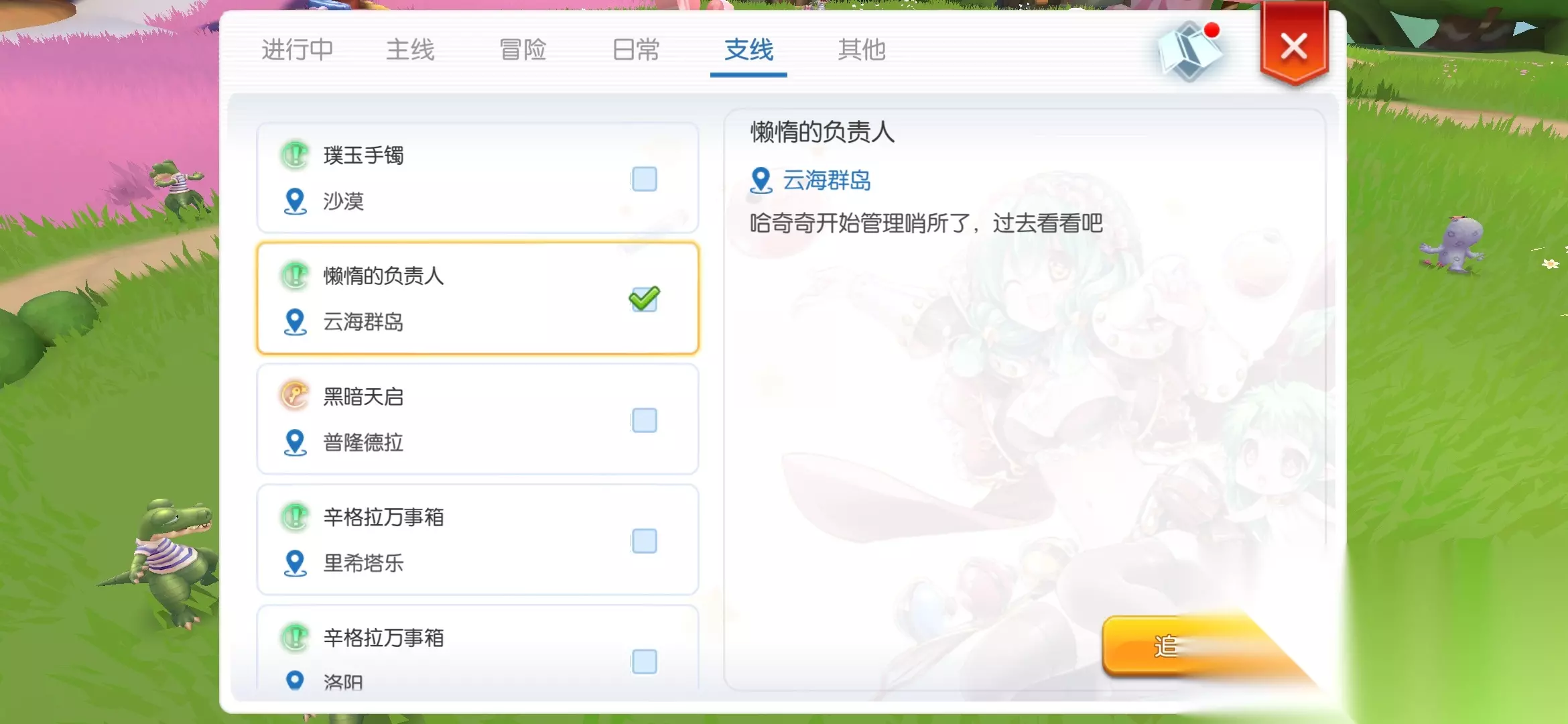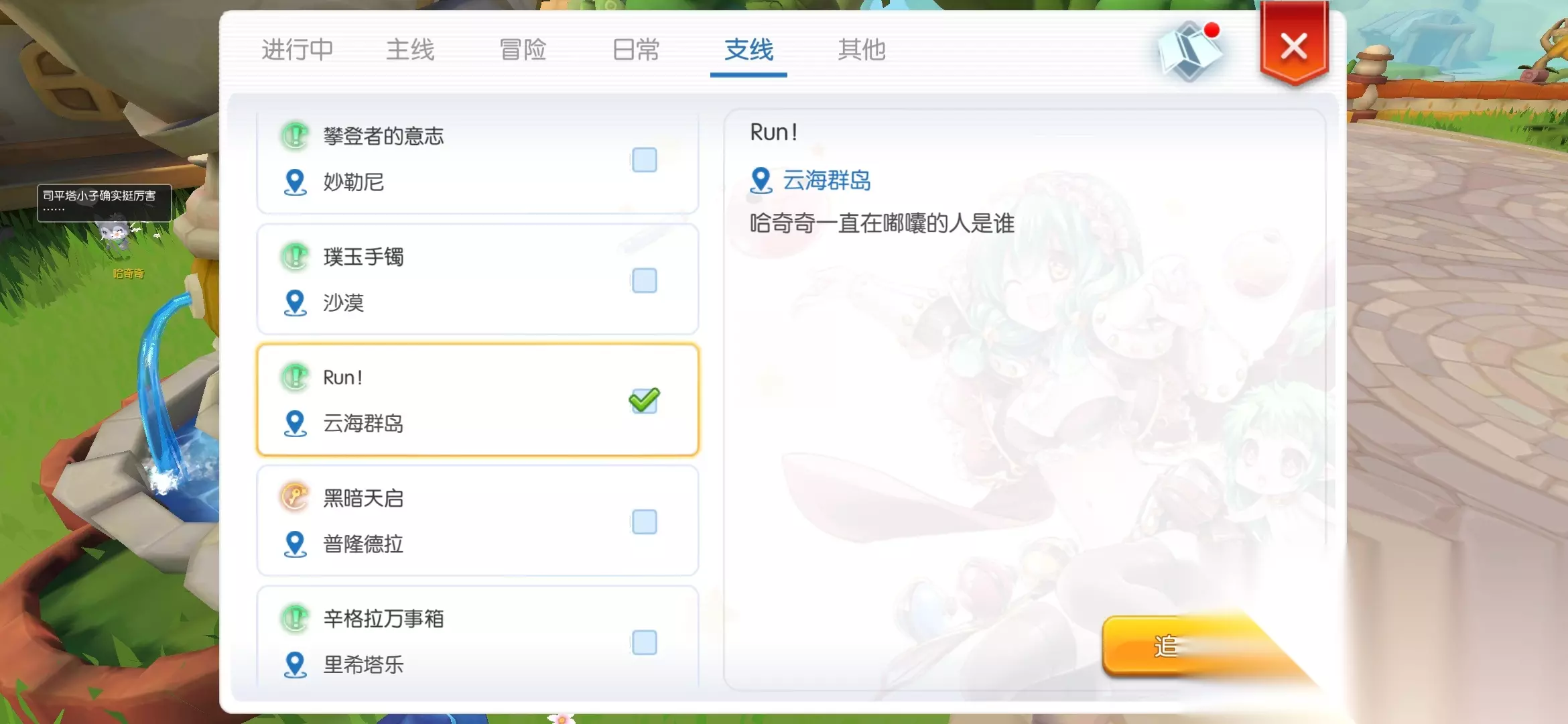 顺着支线任务线进行