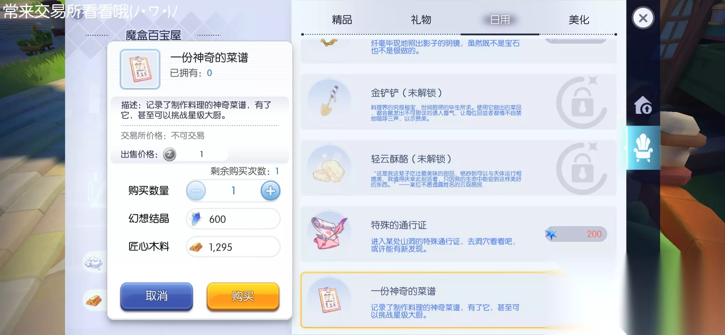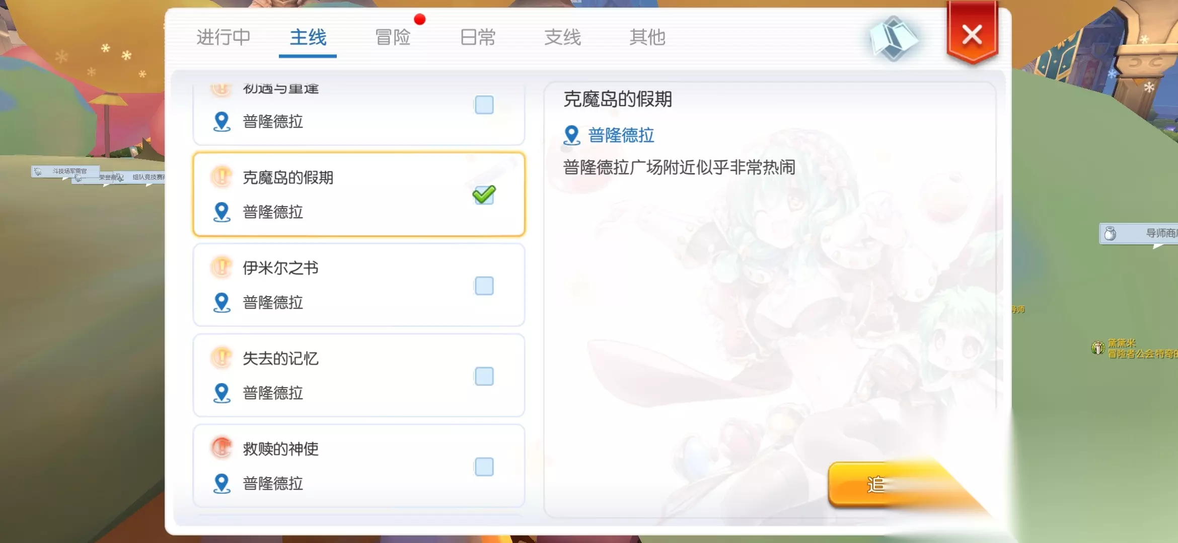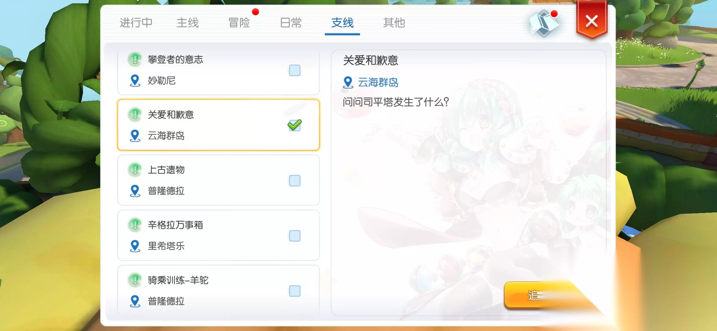 然后下一个任务需要云海群岛开启11天才会出现,中间每日可以做做日常【只有司平塔和大厨2个】,买一些商店日常的道路,每样一个会有用的