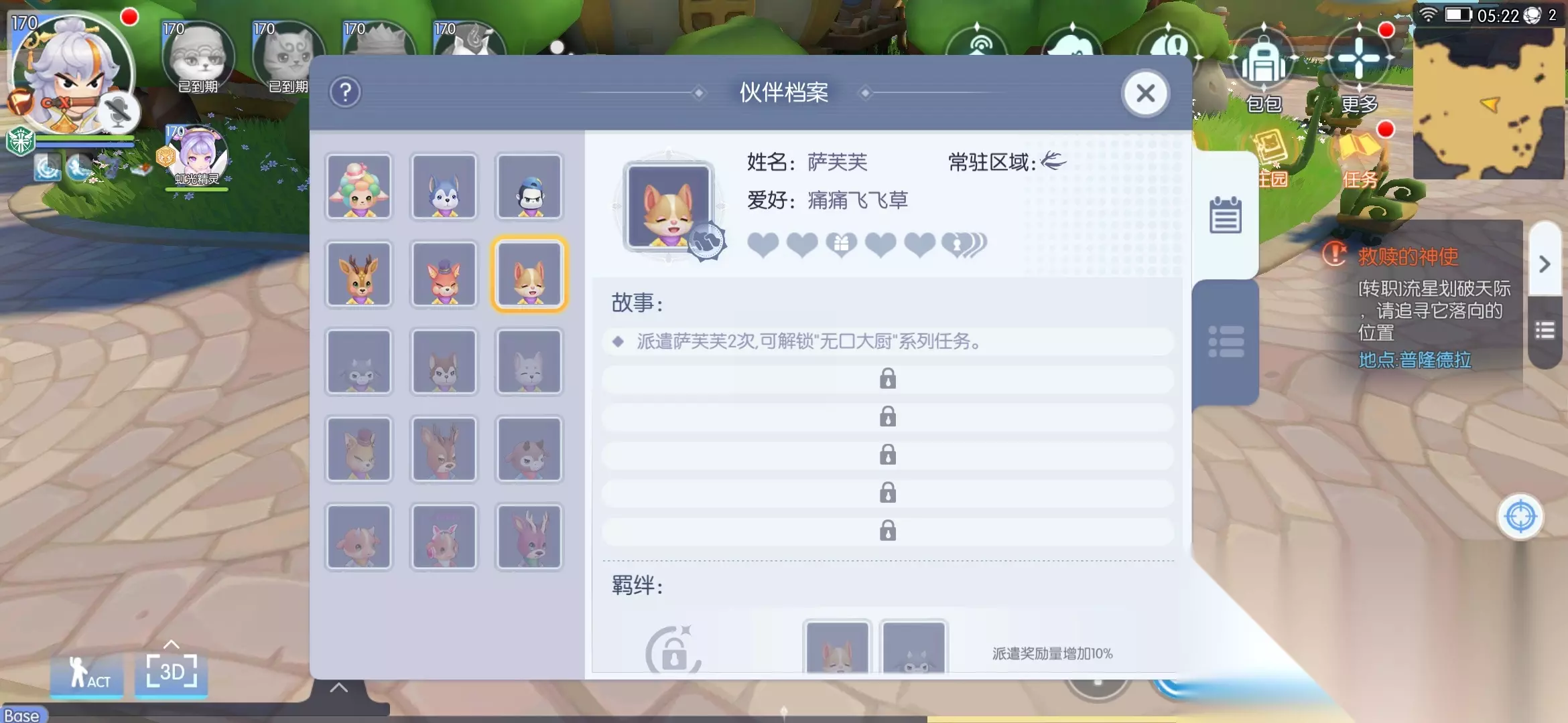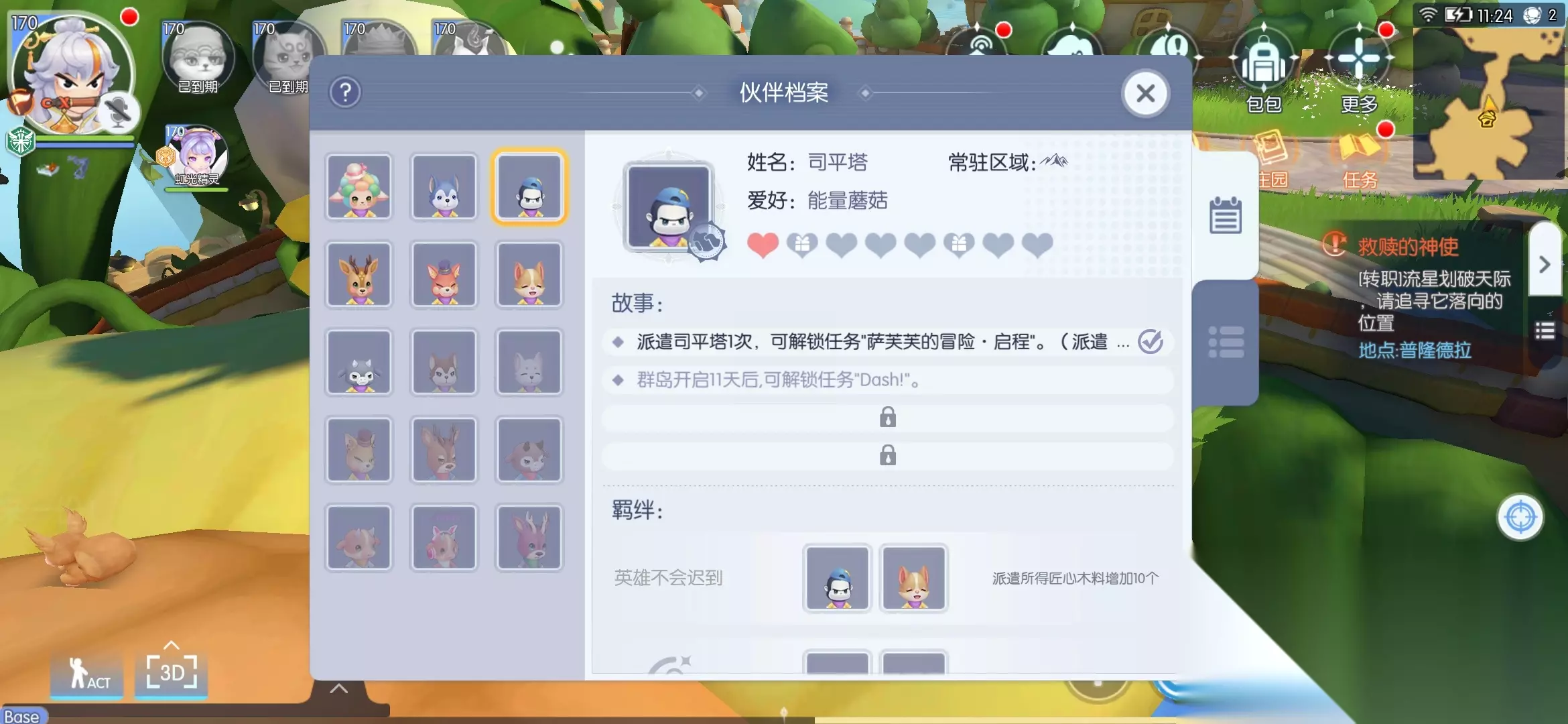 此时,只要派遣【司平塔】就可以任务完成,直接能继续【萨摩耶的冒险】根据提示完成任务
