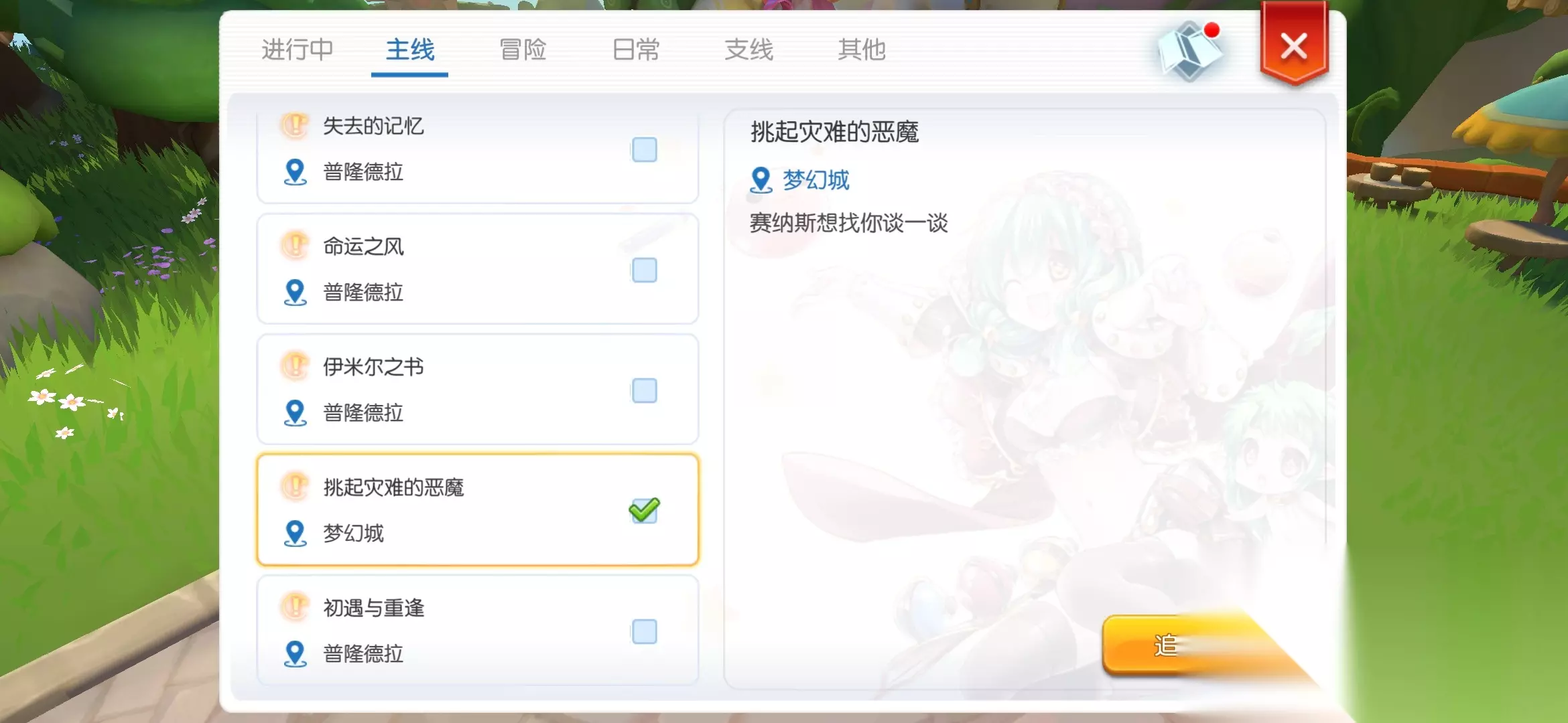 主线任务一直跟进,全是对话任务,直到叫你解开封印之书,进入梦幻庄园,主线任务达到这个进度【挑起灾难的恶魔】