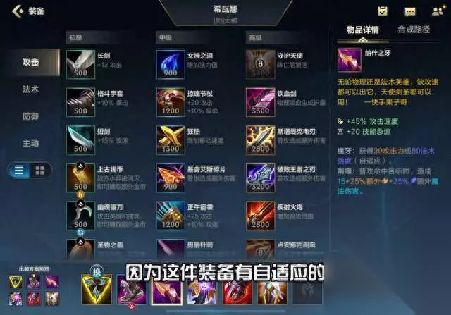 这套出装非常暴力,使用胜率高达17%。 第一件装备选择三项,可以增加攻速、生命值、攻击力和冷却,同时还能提高移动速度,让龙女不再被拉扯。 第二件装备选择抗性鞋或护甲鞋或水银鞋。 第三件装备选择纳什西亚,因为它提供了自适应的三十攻击力和法术强度,再加上峡谷制造者,让龙女有了输出和吸血的能力。再加上第五件装备和之前的天赋,过度生长和血统,龙女可以变成真正的不死流龙女,而且坦克血量高达五千。 最后一件装备根据自己的需求选择复活甲、永生花或死舞。