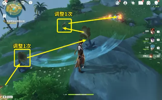 【④】之后,按下图调整「音律花」,敲响「音律树琴」召唤风场飞回去。