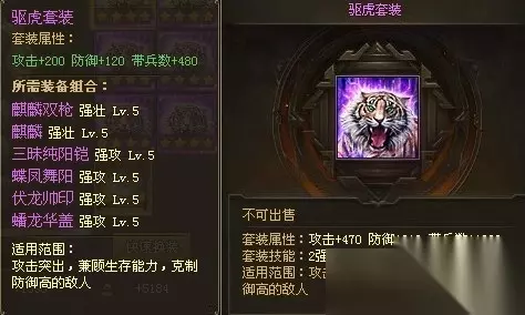 适用范围: 典韦、周泰 适配武将: 统高武将适合 7、驱虎套装