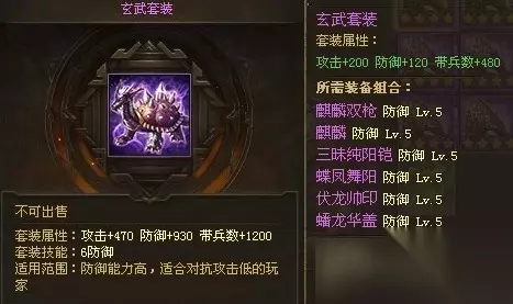 类型:大幅提高普通攻击力 套装图纸获得方式: a. 78级,五星通关单人剧本“单骑救主” b. 85级,点券商城购买获得 适用范围:攻打比自己等级略高,防御较高的人或刷禁卫军使用。 适配武将:百搭。以弱砍强的利器,是低品质低级武将恶心高级武将的必备良品,比如砍1区角色名的武将原来只有1点伤害,穿上白虎可能就是5点伤害。 4、玄武套装
