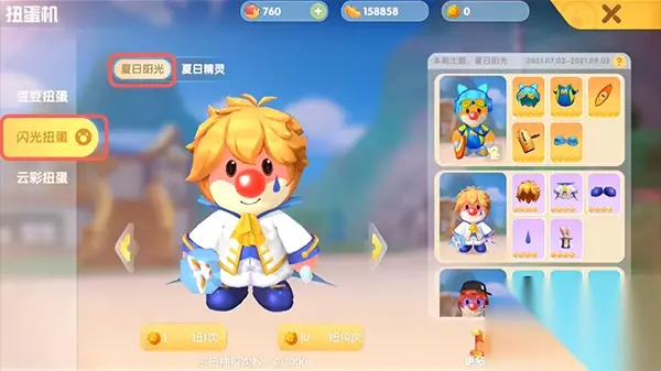 《摩尔庄园手游》魔术师套装获取攻略 魔术师套装: 魔术师发型:+19魅力值 魔术师服:+19魅力值 魔术师鞋子:+10魅力值 魔术师面纹:+10魅力值 魔术帽子:+19魅力值 套装属性:集齐后额外增加50魅力值 获取攻略: 通过闪光扭蛋机可获得,在闪光扭蛋机的夏日阳光奖池,消耗闪光币抽奖有概率获得套装中的某个服装,也可以选择在闪光兑换中消耗炫金金券兑换整套服装。 1.点击游戏右上角的【扭蛋机】参与扭蛋机活动;