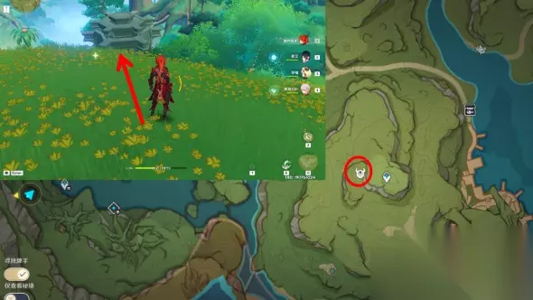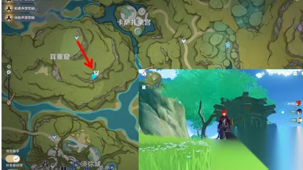 3、二号地灵龛,位于茸蕈窟东南方山坡上,传送至对应锚点后直走即可,但是被一棵树盖住了不易看到;