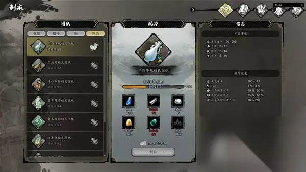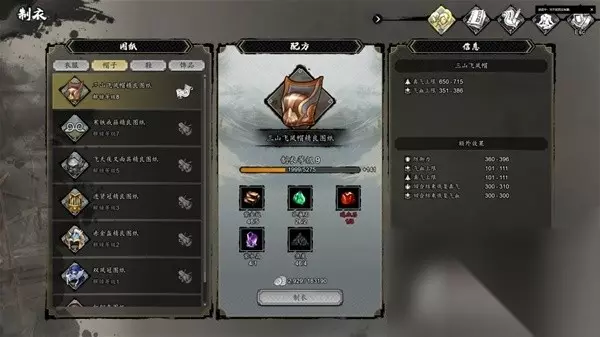 通关前属性图 鞋子没穿2品打造鞋,部分装备存在极品,但图纸除衣服外暂未找到,属性远不如打造的一品装备,所以毕业装目前应该是泰阿剑、锦澜袈裟、三山飞凤帽、乌云朝天靴、羊脂净瓶,另外首饰词条可极大加快发育速度,因此推荐前期快速获取乌天瘤身上的4品清心护符以及黄宗政身上的3品三清铃。