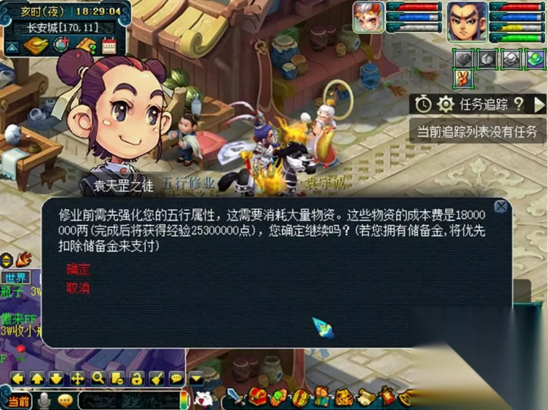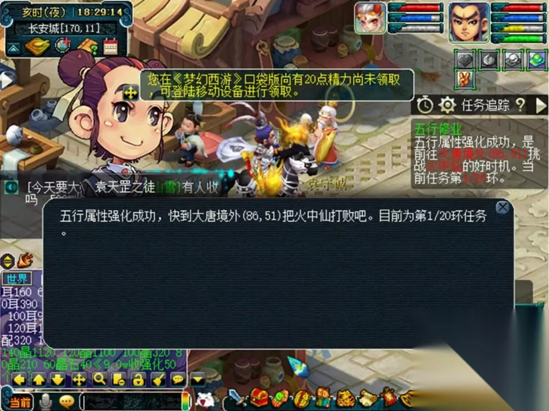 五行修业 玩法背景:宇宙中的一切事物都是由金、木、水、火、土这五大元素的动态变化和交互作用构成的,这就是所谓的五行理论。五行之间存在着相生相克的关系,即金克木,木克土,土克水,水克火,火克金,这种循环永无止境,生生不息。五行学派的袁天罡经过半生的研究,终于创立了一种通过与五行散仙切磋来迅速提升功力,强化体内五行潜能的修炼方式。袁天罡把这种方法称之为——五行修业。玩法介绍: 领取NPC:袁天罡之徒(长安165,14) 领取条件:≥50级,单人,根据等级收取一定费用 ★当前经验>升级经验,或有未完成的五行修业,无法领取 奖励:获得一定的人物经验 其他说明: 1、优先扣除储备金,可全部以储备金形式进行支付 2、获得(花费现金/3500+花费储备金/7000)点三界功绩 3、奖励不受双/精修时间/回梦丹影响 4、每周一0:00到周日24:00限领41环,且每天最多完成21环 5、战斗死亡不计算正常死亡,无死亡损失 4、可用飞行符、导标旗、回门派法术等 详细评测: 对经验或三界功绩需求度较高的玩家,可在长安城(165,14)袁天罡之徒处领取任务,任务分为2种模式,一种是领取一轮(即20次任务),另一种是领取一次任务。