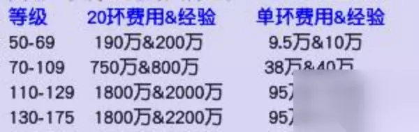 各等级领取消耗及所获经验如图所示,可见20环的平均费用消耗会略低于单环,对于需要大量经验的玩家,建议直接领取20次任务。
