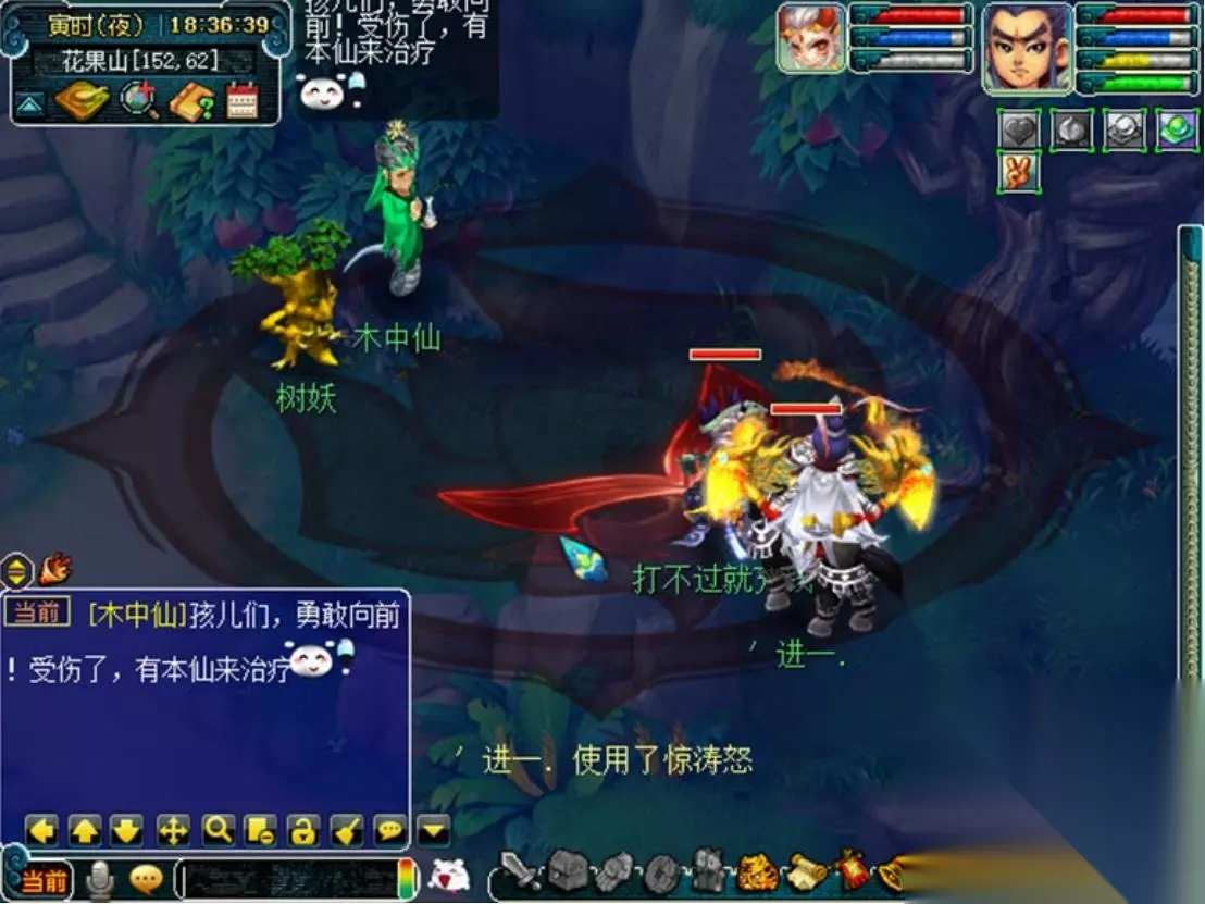 木中仙:花果山(149.66),喊话孩儿们,勇敢向前,意味着当小怪死亡时,主怪会继续召唤小怪,建议优先击杀主怪。主怪为化生,会唧唧歪歪/召唤一只花妖。小怪为盘丝,会摄魄。