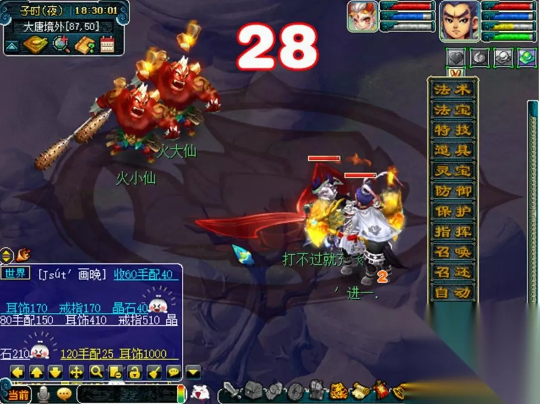 火中仙:大唐境外(83.55),双生儿,二者如影随形、共死双生,意味着两个怪物会互相召唤,并使用地狱烈火,建议带法系召唤兽面伤清理。