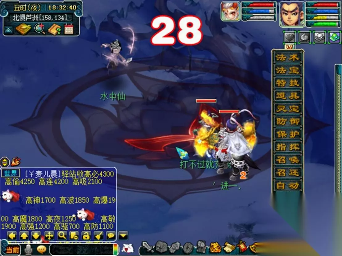 水中仙:北俱芦洲(158.138)。主怪固定一速,无限分身再分身,意味着将两个怪物杀死即可通关。