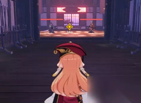 大门打开之后,里面是一大堆纸屏风。这个纸屏风是可以破坏的,否则你就要这堆纸屏风里面找那些怪出来打,也太辛苦了。 (一般,钟离长按E之后的AOE,或者是其他范围比较的技能都是能直接破坏掉这些纸屏风的,纸屏风后面躲着愚人众。)