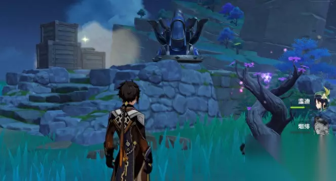 在这个点亮起之后,就可以利用借景之馆边上的传送点,直接飞到借景之馆门口,启动这个副本了。(在山沟沟里面,找得仔细一点。)建议你带上,钟离、重云、温迪、岩主这类能打出“下落重击”的角色。
