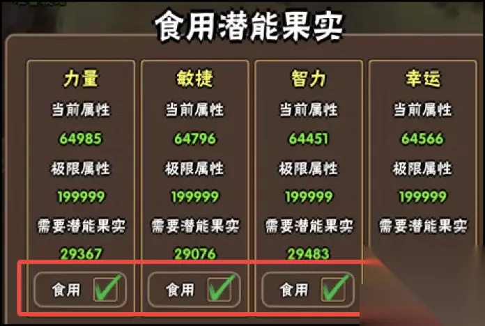 有了金币和强化石之后,强化装备提升属性,打怪速度明显下降打的很慢的情况下,切回之前的难度继续挂机刷强化石,强化装备然后再切换回当前最高层数继续推关。 以上方法推荐角色为神偷,幻影游侠以及神射手这三个职业。 第二个方法 刷普通难度攒通关令牌换取潜能果,攒够30万潜能果然后智能使用