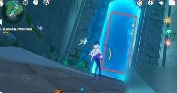 2、看见大门后,向前走穿过蓝色大门进入其中。