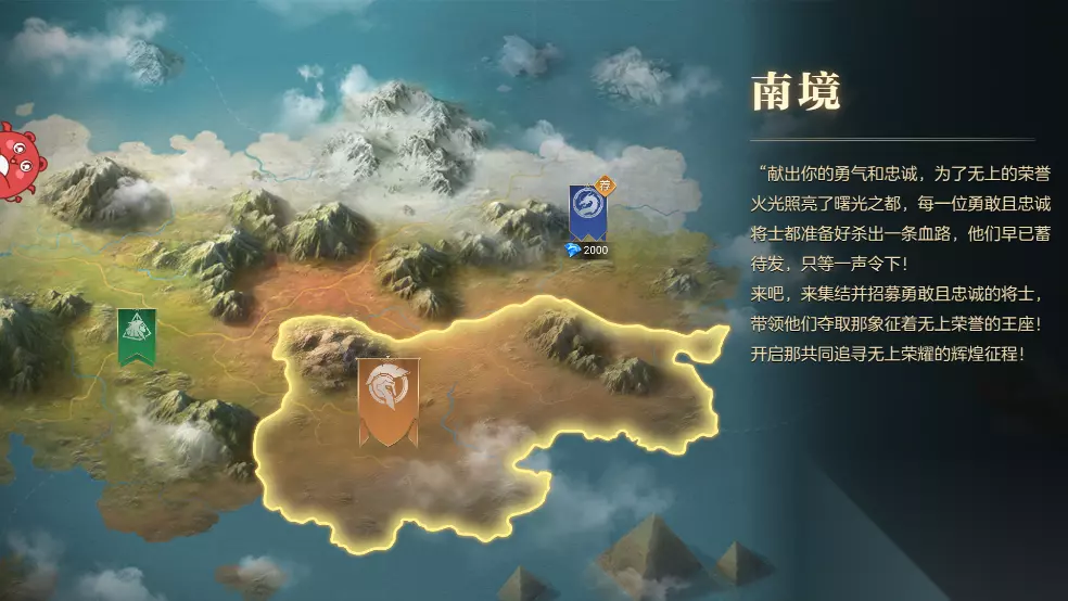 三、南境 献出你的勇气和忠诚,为了无上的荣誉火光照亮了曙光之都,每一位勇敢且忠诚将士都准备好杀出一条血路,他们早已蓄待发,只等一声令下!来吧,来集结并招募勇敢且忠诚的将士,带领他们夺取那象征着无上荣誉的王座!开启那共同追寻无上荣耀的辉煌征程!