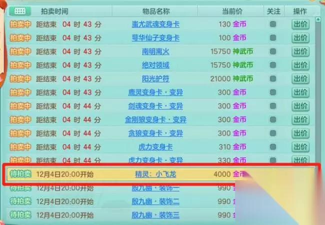 也可以通过拍卖的方式,直接获取成型的精灵进行养成。