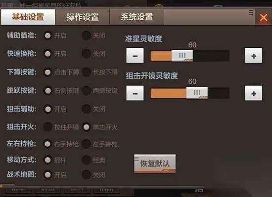 虽然输了,但是KD说的过去,对吧(笑)~ 2.狙击瞄准篇 对于狙击的设置略与辅助瞄准不同,要减少狙击枪的失误次数,那就要在射击时充满自信。我调高了开镜灵敏度,在狙击射击上做了改动,将其改成单击开火。准星灵敏度也可以同第一个方法(副武器防身)