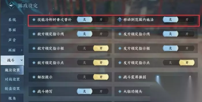 还有另外就是白虹使用的时候会在中心生成一柄气剑 气剑的作用,主要两个用途 1.触发踩剑(青龙怒),龙吟自身经过自己的气剑会引爆气剑产生一次伤害 2.刷新惊雷,使用惊雷命中气剑可以重置惊雷的冷却时间,同时触发踩剑效果 根据以上机制:就会有后续的衍生,龙吟惊雷流 【系统设置】 这两个默认关掉,不然会在某些情况调整角色移动并且在按键次数多了之后影响操作