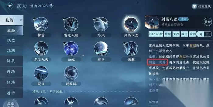 通过上述的剑心以及剑意的科普,消耗剑意(蓝)进行追击增加剑心,剑心求败使用,消耗剑心后可以触发龙吟的特质效果 龙泉鸣效果 根据注释: 使用雷龙天翔后进行剑意追击,释放求败、破空以及诛邪四种方式可以触发龙泉鸣效果