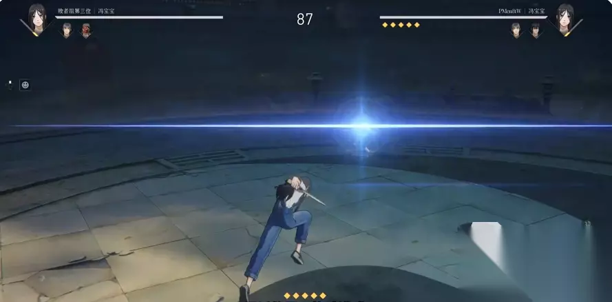 3、冯宝宝 冯宝宝一直都是原作和游戏里人气非常高的角色。普攻1A向前推掌,2A快速出手向前划一刀,3A反手再来一刀,4A向前后抡一脚,5A向前飞踢将敌人踢飞,不能连招。之后是投技,敌方如果防御时进行普攻,就会直接变成投技,防御是抵挡不了普攻的,只能挡技能,如果对面是远程角色,使用防御一样会被投。1技能释放后,直接释放会来回突刺两下,随后回到原位,在突刺结束后追加攻击,会向前上挑以后砍出一道剑气,如果第二下的输入时机完美,则会放出2道剑气,一技能同时具备位移,远程和近战的压制能力,能拿先手和反手,非常的灵巧,性能非常不错。