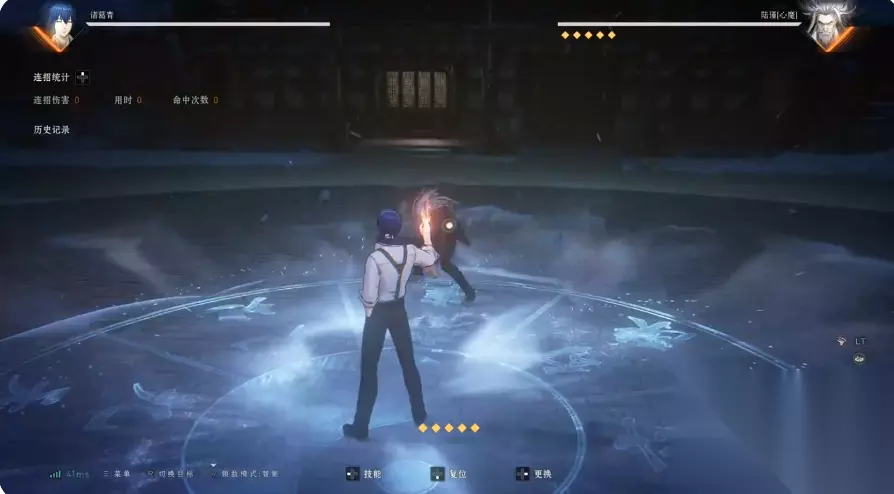 2、诸葛青 诸葛青是在测试当中大家普遍反应拉扯能力比较强的异人,近距离抓取加上远程压迫,让他有不错的游走手段。普攻先向前踢出一脚,2段手刀后肘击敌人,3段向前挥拳,4段推手将敌方击飞,只要不打第四段基本都能进行稳定的连招。1技能发动后,向敌人打出一道贯穿全图的火球,火球一旦接触到场边或命中敌人就会发生爆炸,后摇比较大,近距离的话需要主动取消,因为爆炸会扩大范围的关系,因为在板边的命中率很高。