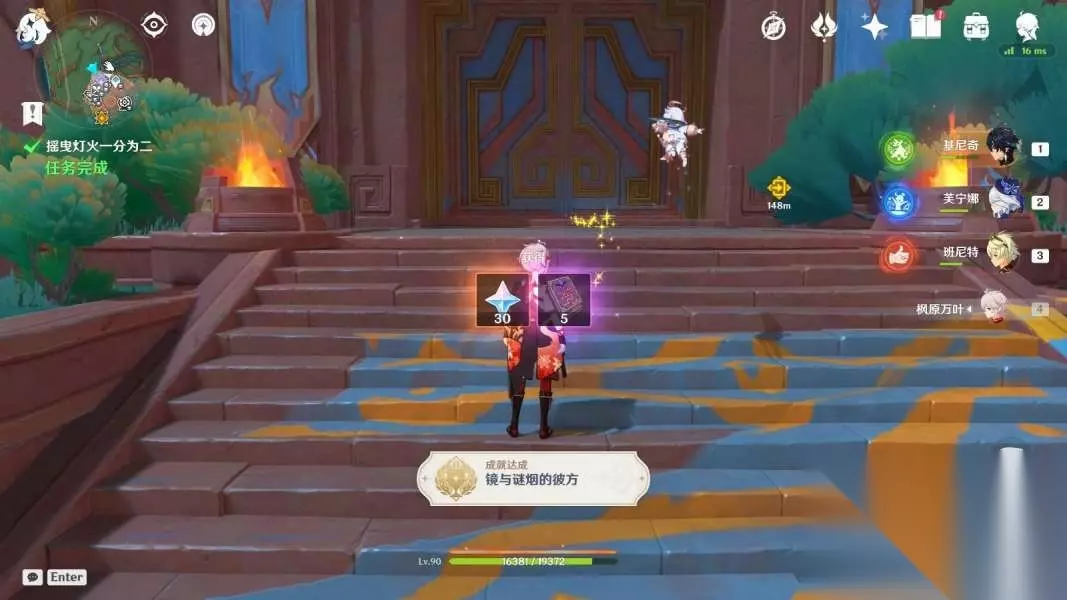 对话结束,完成任务「摇曳灯火一分为二」,获得成就「镜与谜烟的彼方」