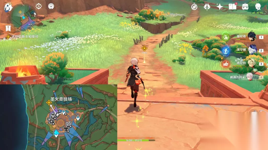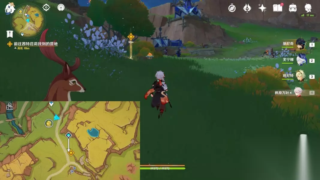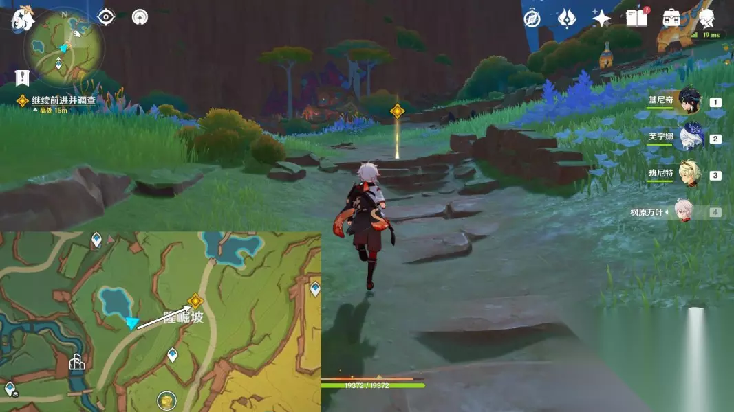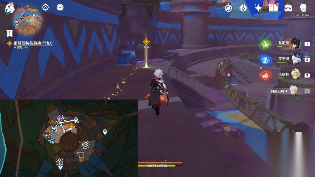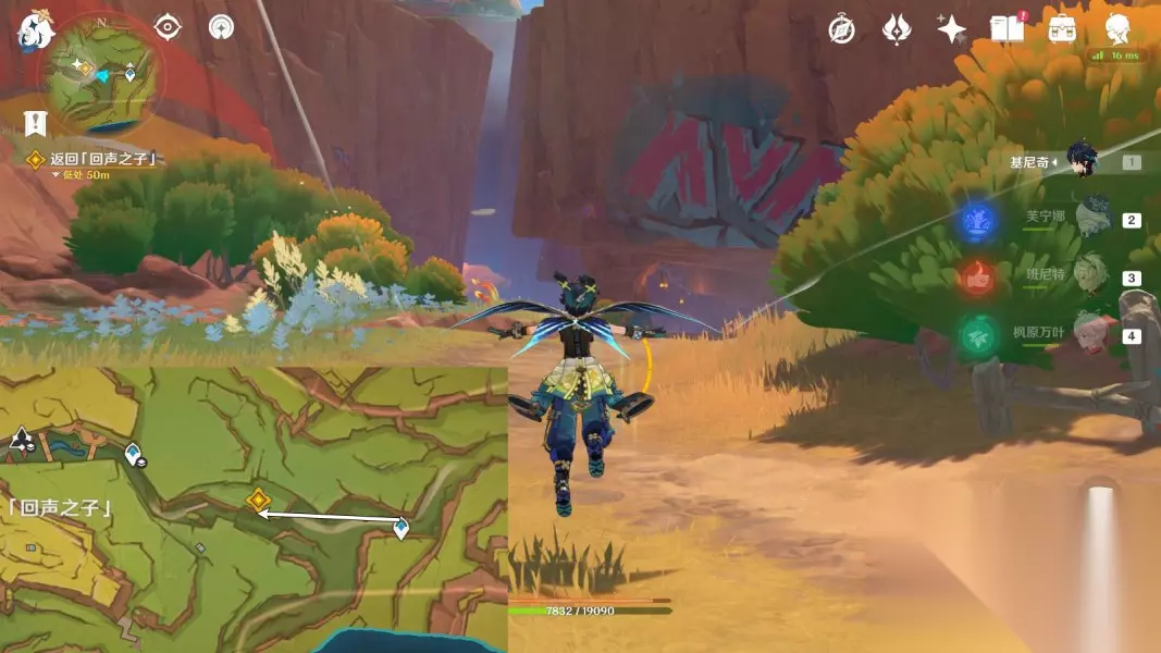2.前往「回声之子」 传送「回声之子」神像,往地图的东方向走 ▶前往台阶下,与希诺宁对话4分钟;