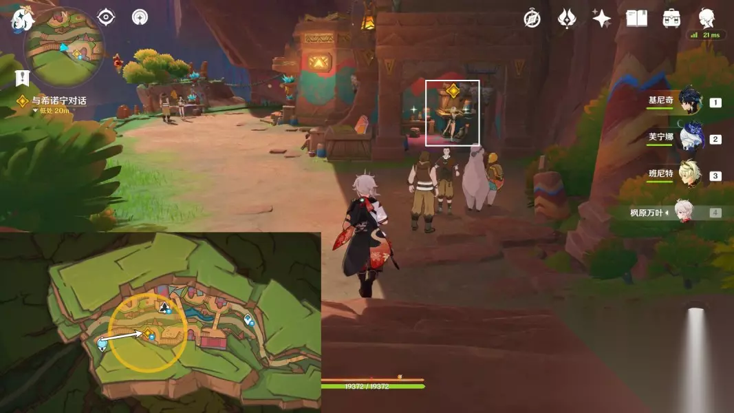 3.前往约定地点与基尼奇会合 传送「回声之子」神像,与基尼奇对话1分钟