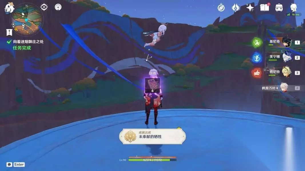 对话结束,完成任务「向着迷烟飘往之处」,获得成就「未奉献的牺牲」