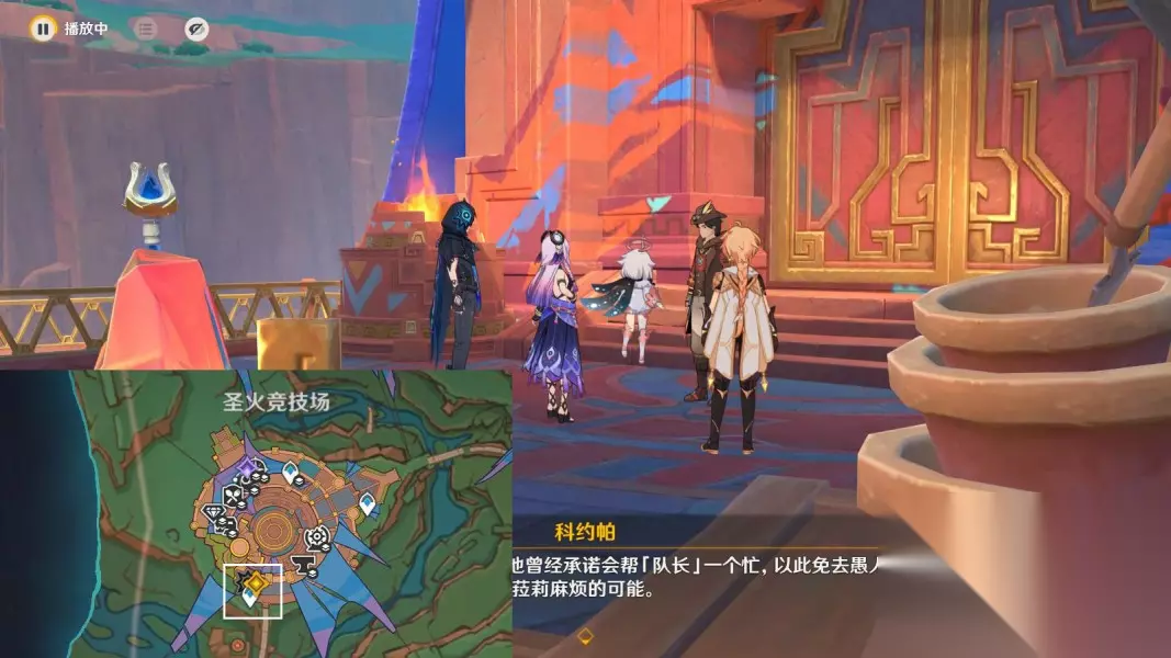5.前往约定地点等待茜特菈莉 传送圣火竞技场东南方向锚点,往地图西南方向走 ▶前往侧面通道,与茜特菈莉对话5分钟;